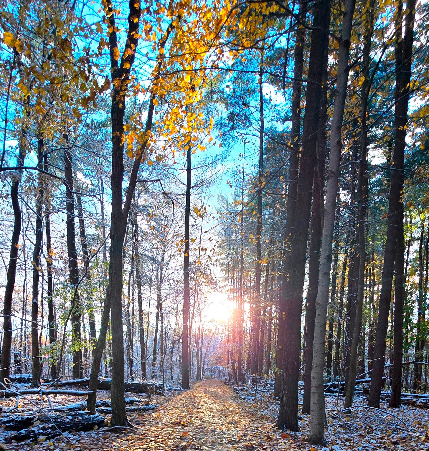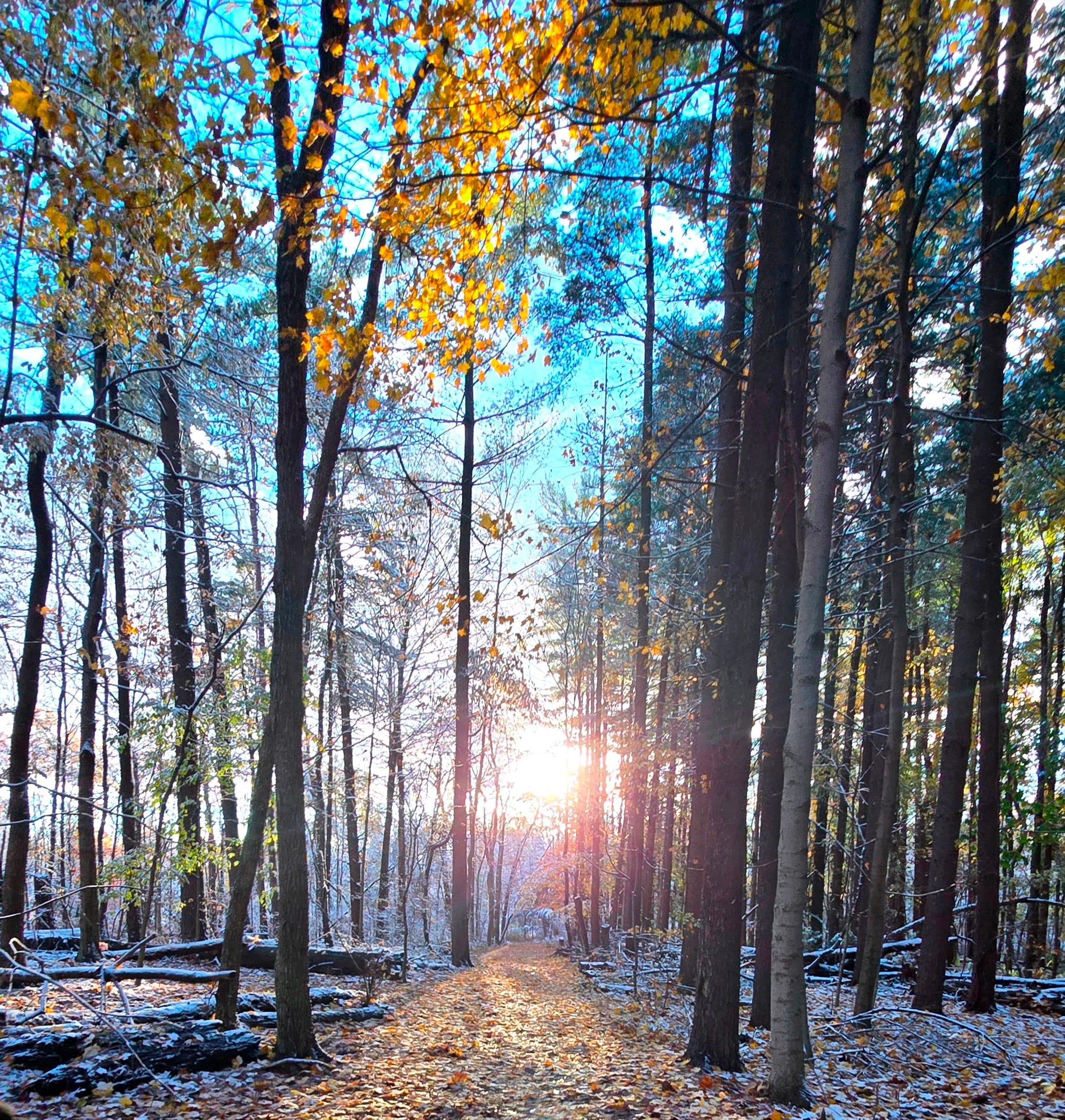 It snowed early this year in Ohio. The trees still clinging to color beneath the weight of a gentle freeze.